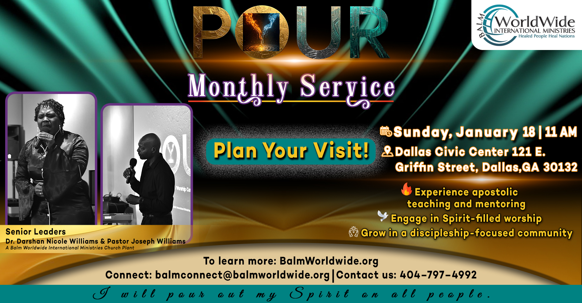 POUR | Discipleship & Worship Community “I will pour out my Spirit on all people…” — Joel 2:28 Balm Worldwide International Ministries | Home of POUR | Discipleship & […]